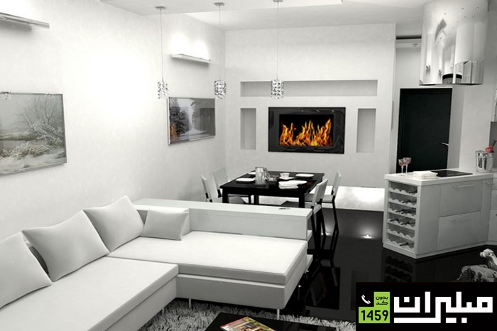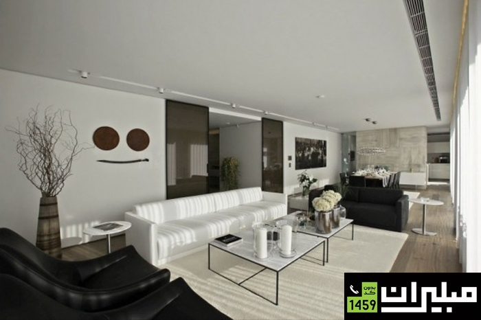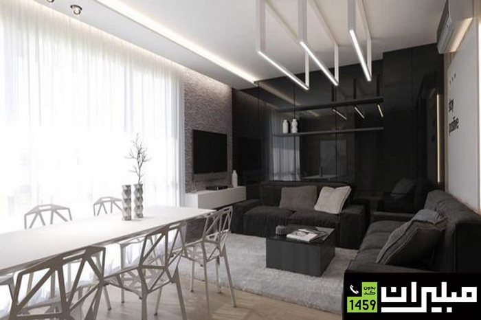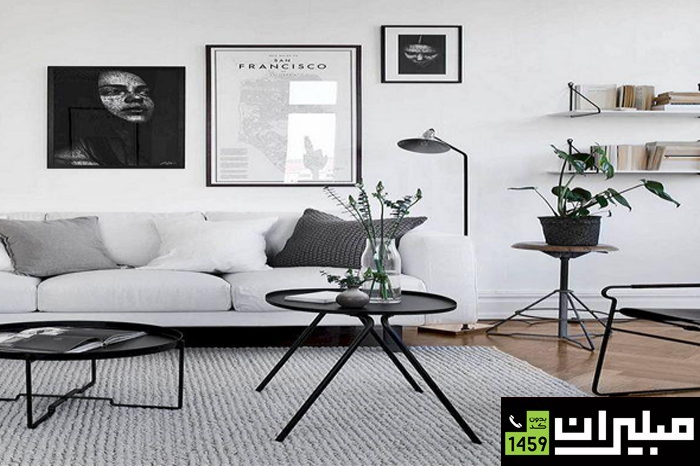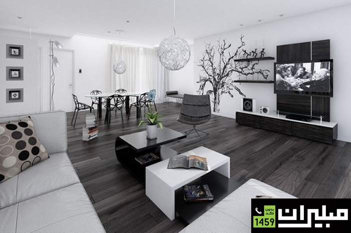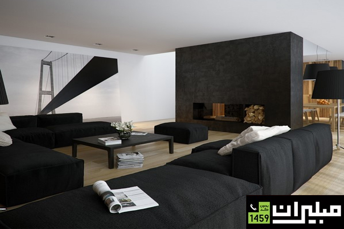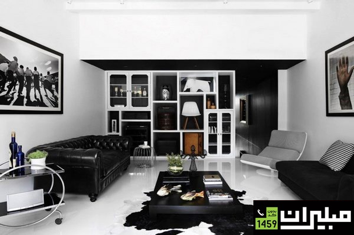 دکوراسیون داخلی اتاق نشیمن سیاه و سفید مبلیران